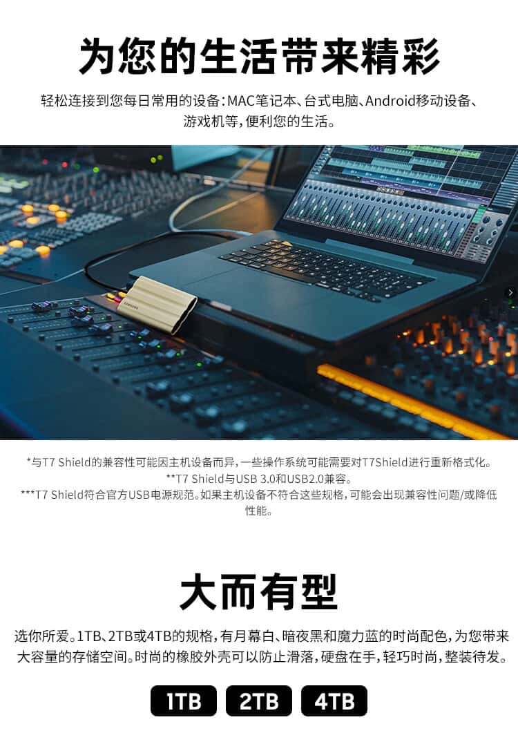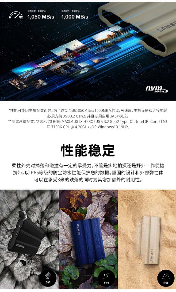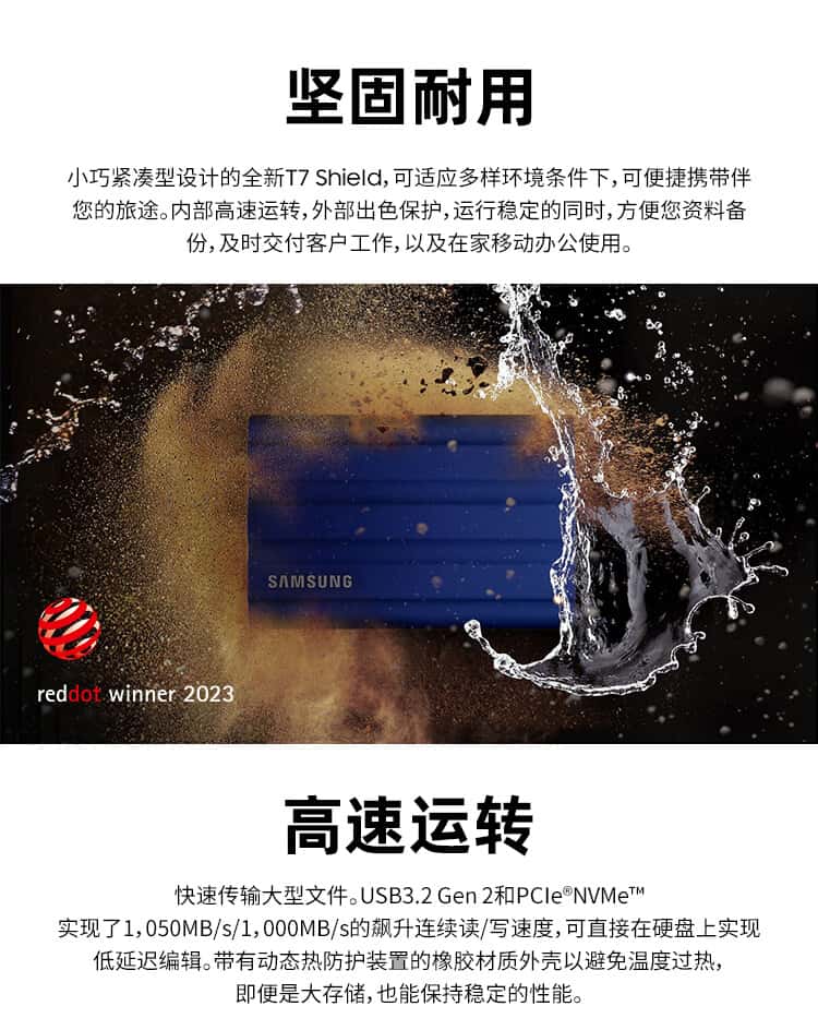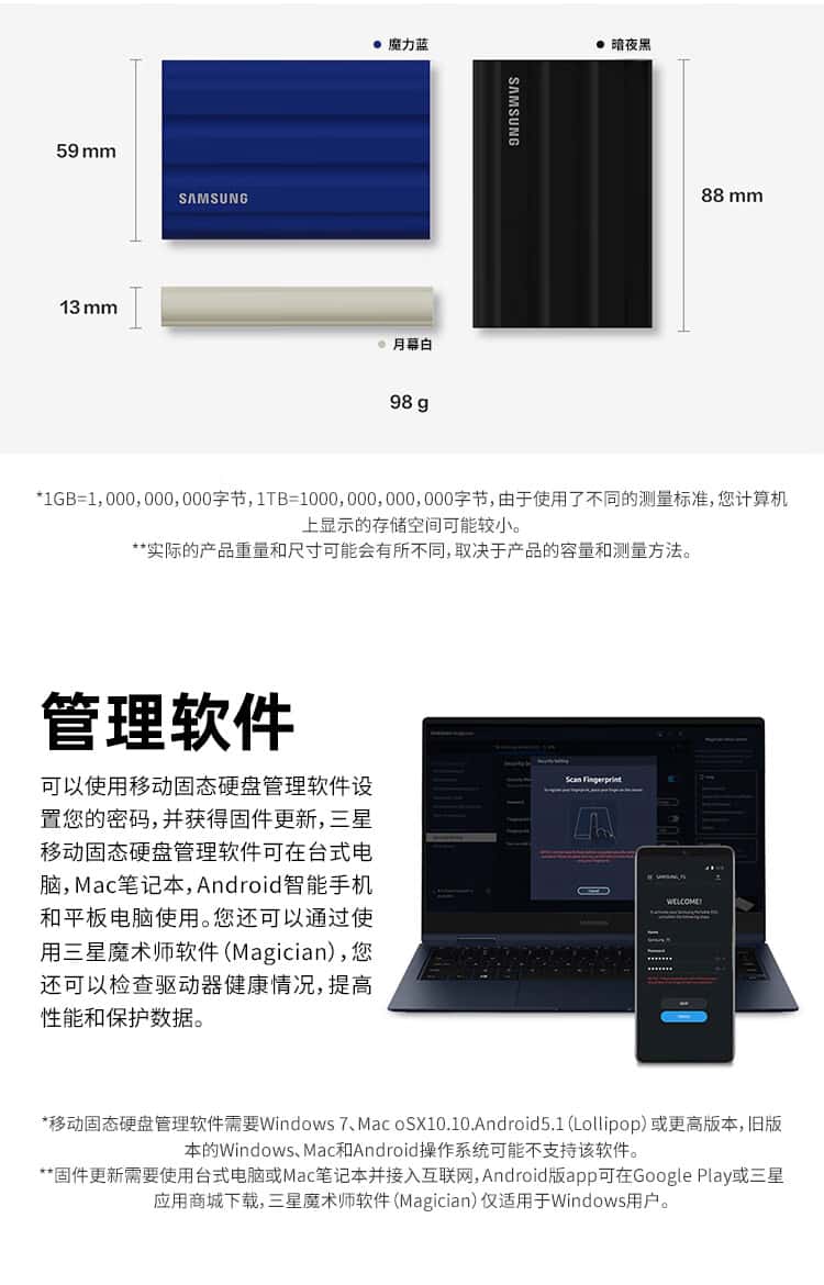 三星(SAMSUNG)1TBType-c接口移动固态硬盘(P