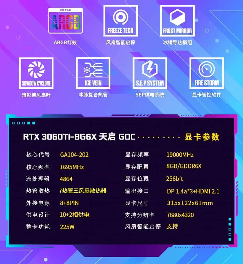 索泰(ZOTAC)GeForceRTX3060Ti-8GGD