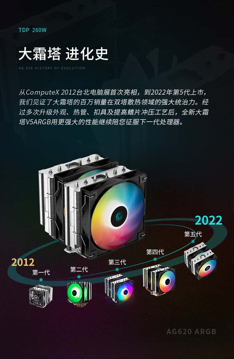 九州风神(DEEPCOOL)CPU散热器大霜塔V5ARGB风