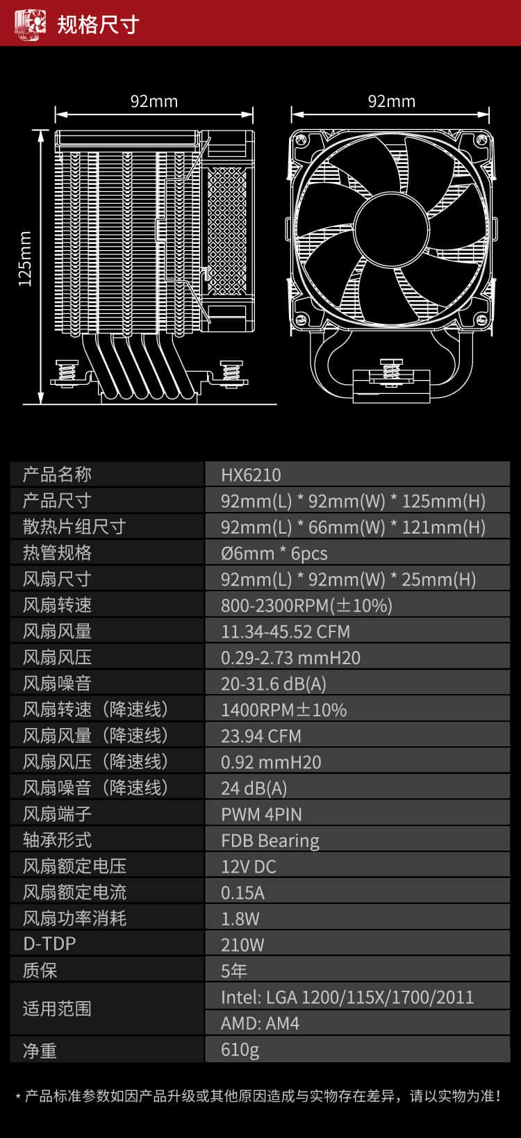 乔思伯(JONSBO)HX6210塔式CPU散热器(6热管/