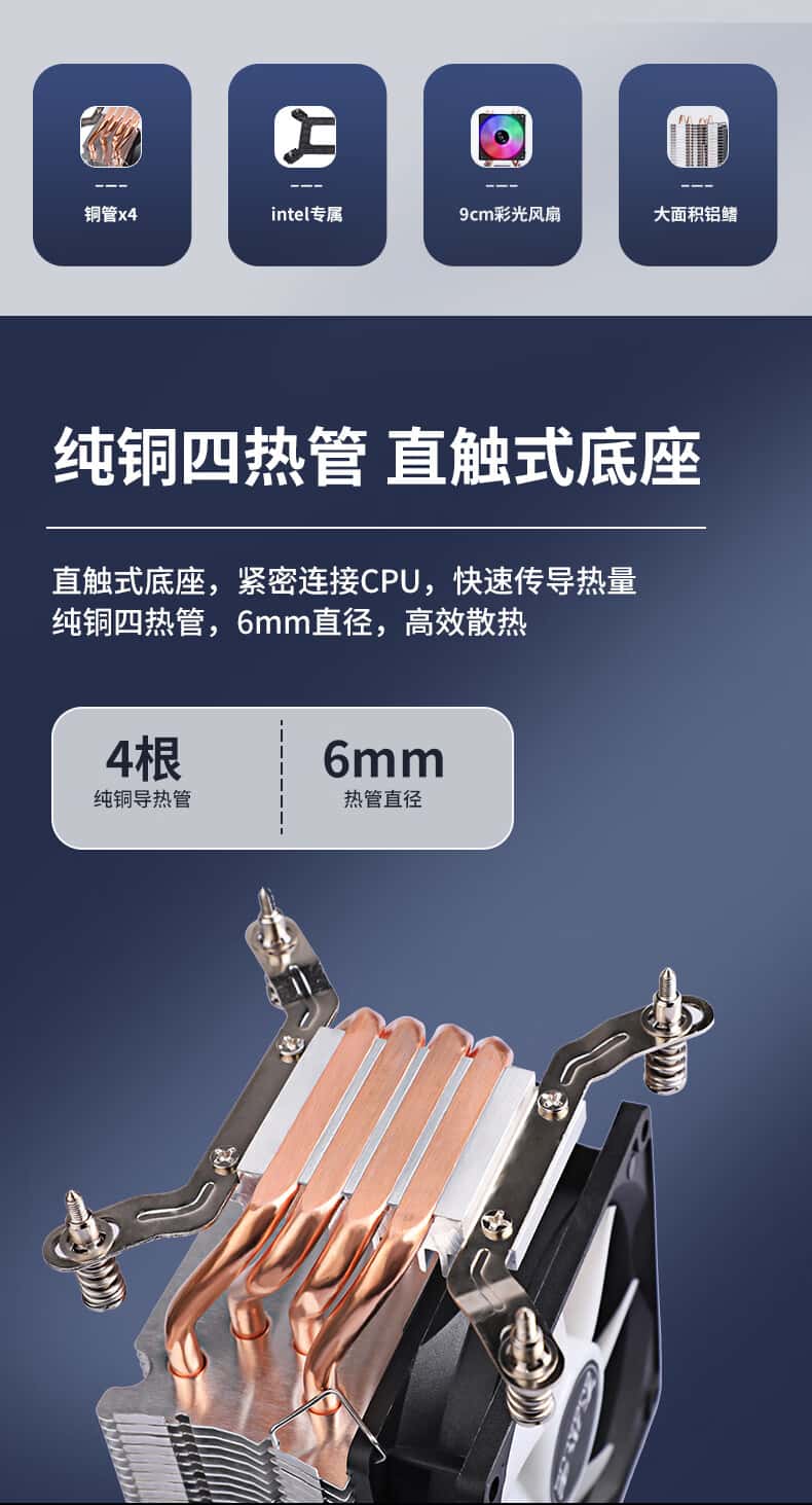 ID-COOLING下压式CPU风冷散热器4热管直触9CM风
