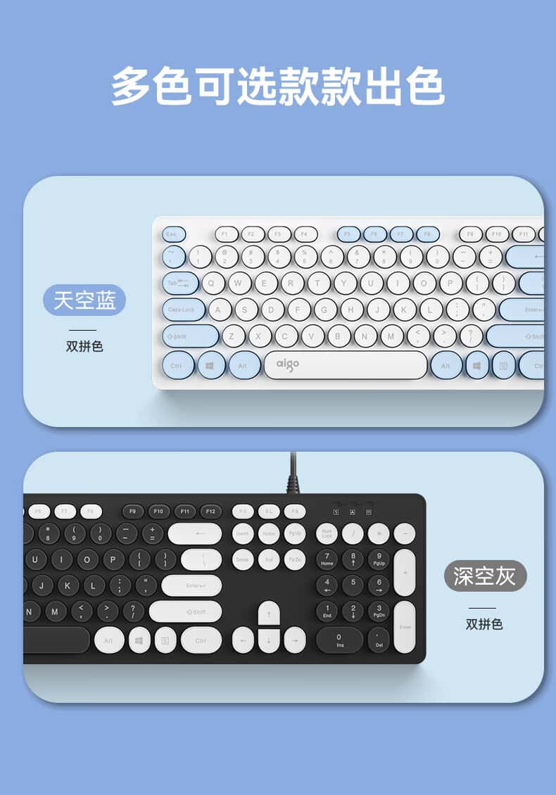 爱国者(aigo)K200有线键盘复古圆形拼色键帽USB即插